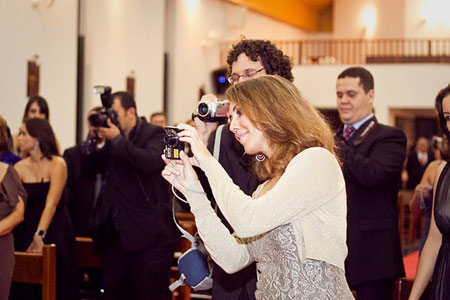 A cerimônia foi linda, as músicas foram perfeitas, nunca senti tamanha felicidade. Após a cerimônia tiramos algumas fotos no altar com nossos pais e as crianças. Descemos do altar, e caminhamos para a saída, pela primeira vez com marido e mulher. Estava muito feliz, e não conseguia parar de sorrir. Não consegui ver a entrada dos demais na igreja, mas para a nossa sorte 5 pessoas filmaram o nosso casamento, os quais ainda estou esperando os vídeos para editar, hihihih. Né, @Guanabara?
